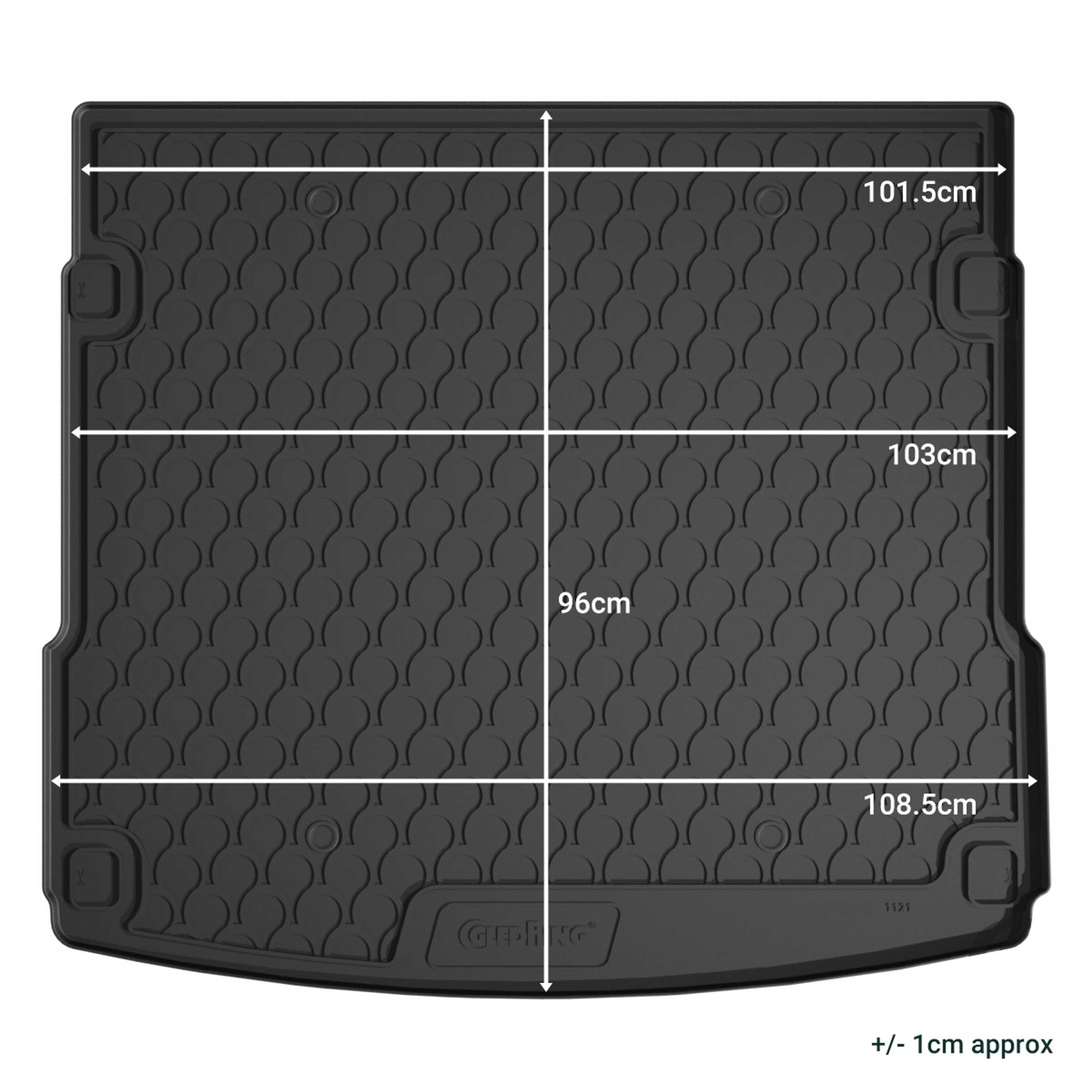 - Raised edges to contain dirt, resistant to water, oils, grime, UV sunlight.
