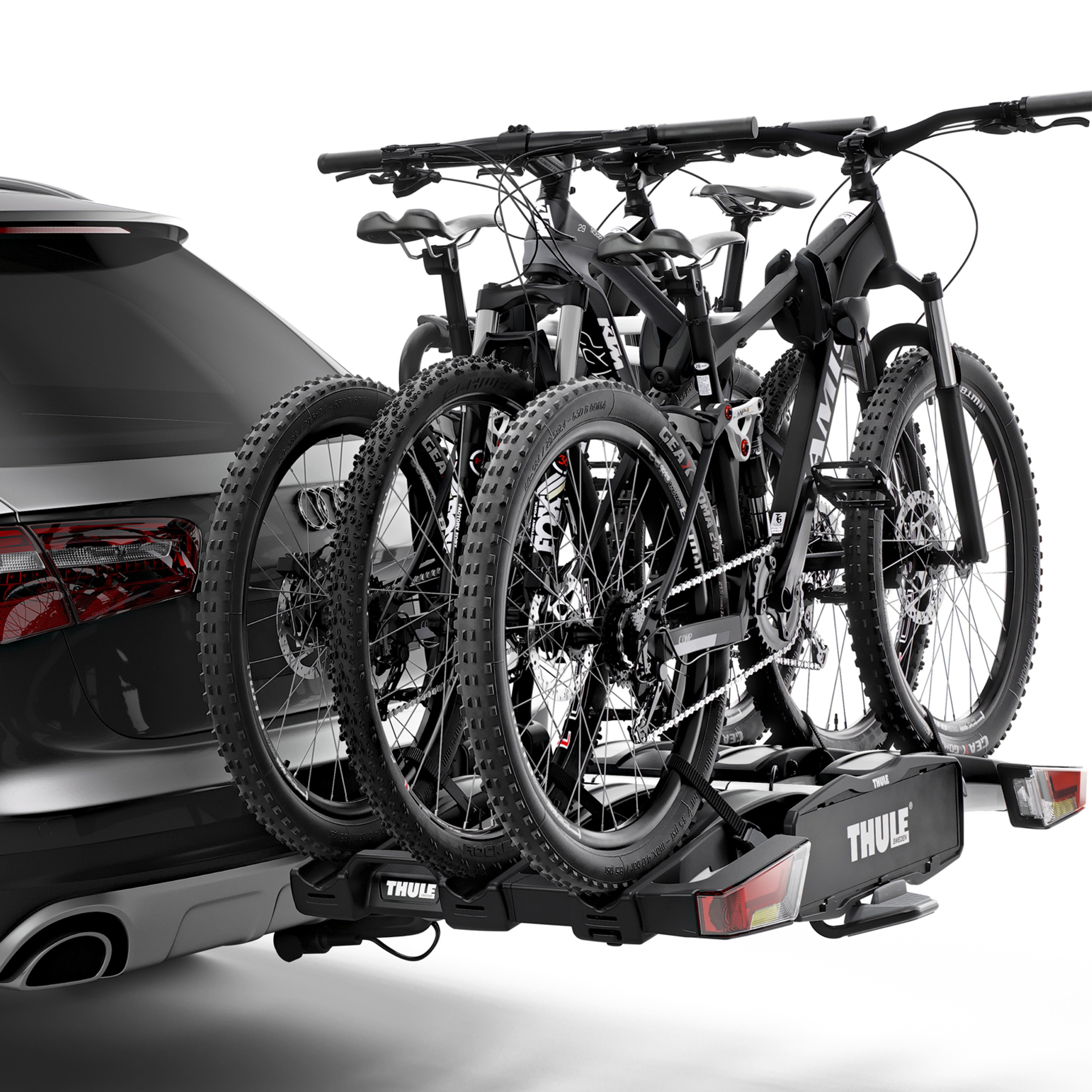 - This Thule EasyFold XT 3 9343 Towbar Mount car bike rack offers a secure fit and a modern design.