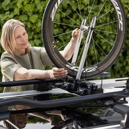 - The Thule 547 Front Wheel Holder allows you to fit a front wheel directly to your car roof bars.