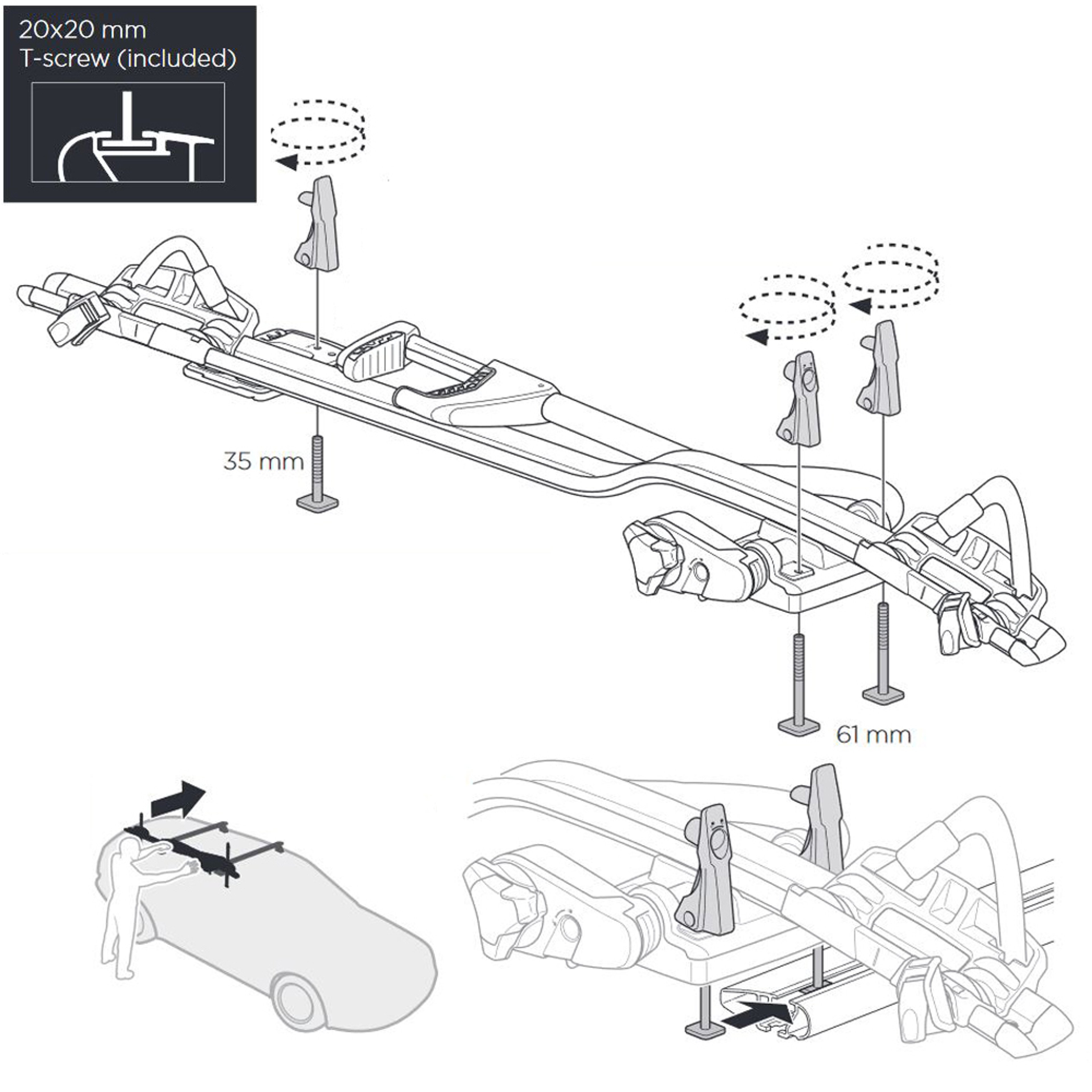 Please note - only compatible with roof bars featuring T-tracks. Adaptors for Square Steel or round Aluminium bars are required and sold separately.
